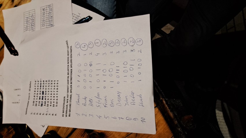 Na een spannende finale tussen Hay en Bas, kwam Bas van Gool als winnaar uit de bus. De strijd om de 3e plaats ging tussen Andy en Frans. Daar trok Frans aan het langste eind. Over een aantal weken is het gedaan met de pret en beginnen de trainingen weer.